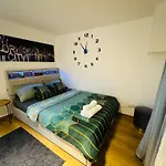 Lägenheten ligger 5 minuter till fots från busshållplatsen Deutschherrenstrasse.